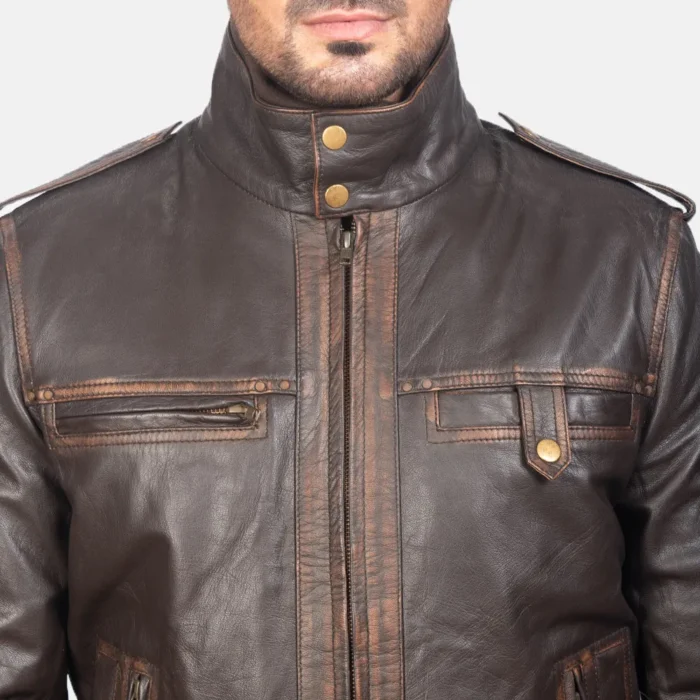 Ionic Distressed Brown Leather Biker Jacket-reviseleather