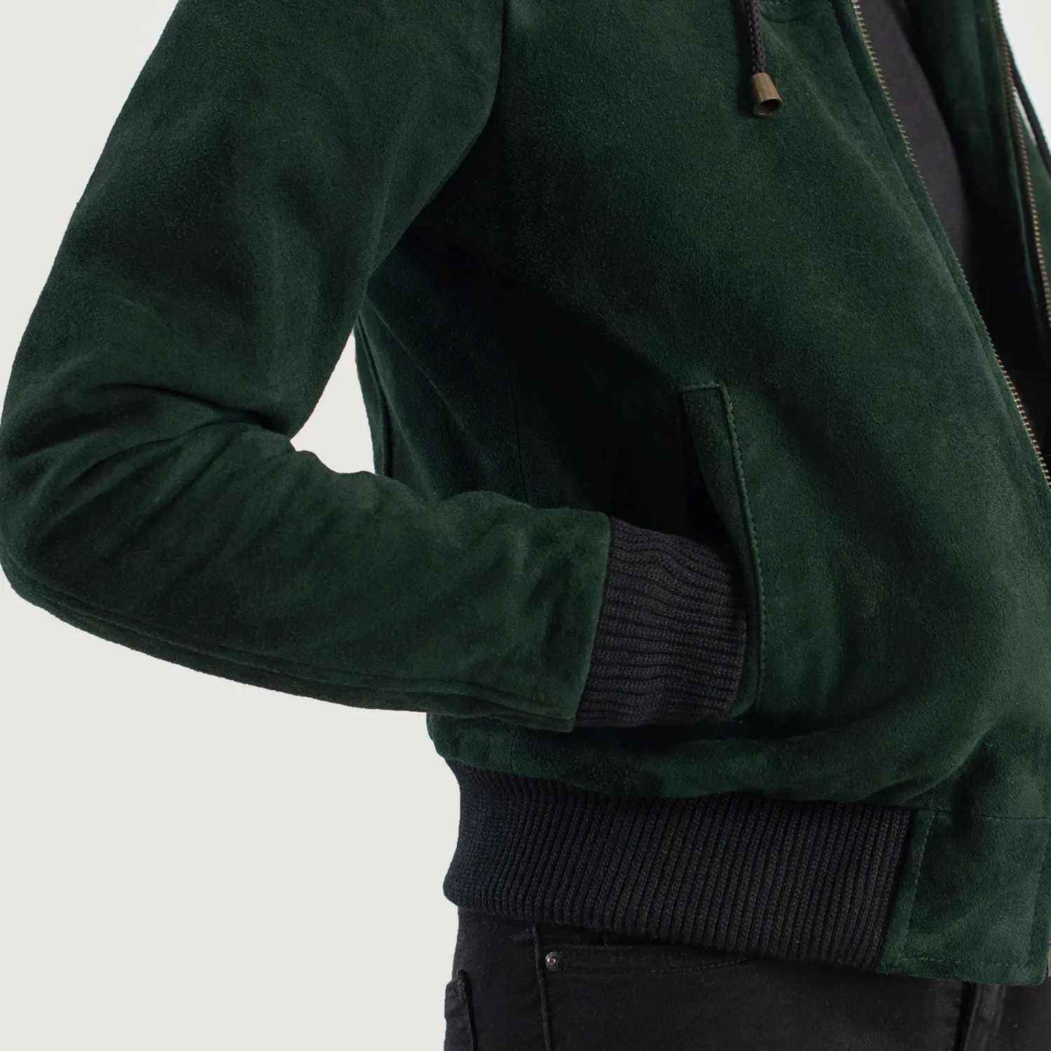 Be the first to review “Rebella Green Hooded Suede Bomber Jacket” Cancel reply