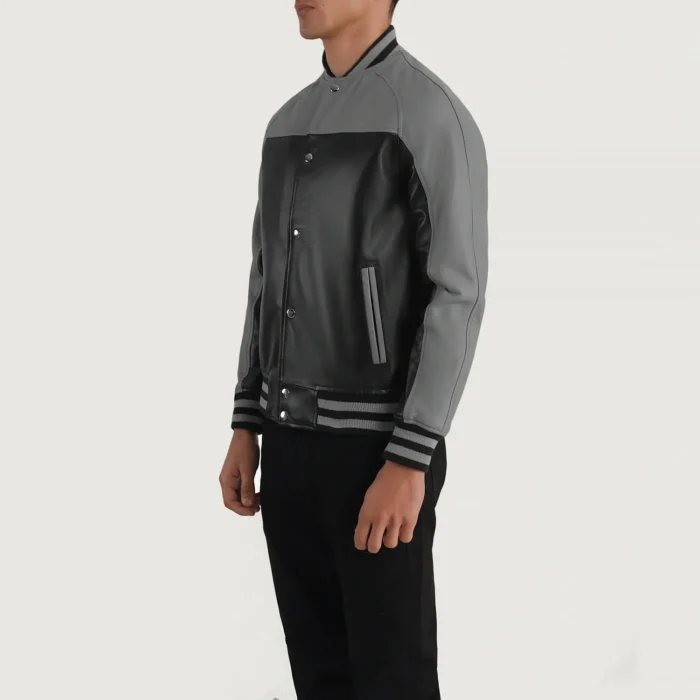 TERRANCE BLACK & GREY LEATHER VARSITY JACKET